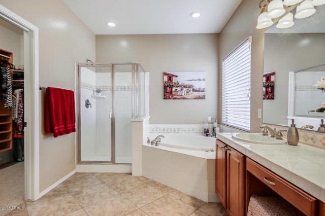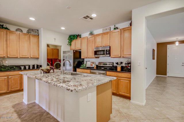 BEAUTIFULLY UPGRADED – SINGLE STORY – CORNER LOT LOCATION – RV GATE / This home features 3 Bedrooms Plus Den, Split Plan, 2 Bathrooms, 3 Car Garage, Featuring NEW Interior 2-Tone Paint, Gorgeous Granite Countertops, 42” Maple Cabinets with Cabinet Knobs, Stainless Steel Appliances, 9′ Ceilings, 18” Tile Throughout, Neutral Carpet, Large Master Suite with Large Master Bathroom with Separate Tub(Jacuzzi) and Shower, Fantastic Master Closet Organizer to enjoy, Upgraded Light Fixtures, Upgraded Door Hardware, Window Coverings, Soft Water System, and Much More. The Backyard Oasis Features an Extended Covered Patio, Green Grass, Built In BBQ, and Water Feature. Garage has beautiful built-in Cherry Stain garage cabinets for great storage. This Home is an ABSOLUTE MUST SEE!
