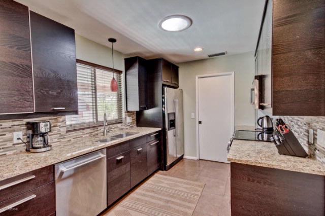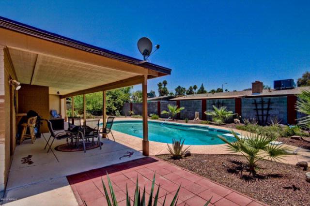 We Represented the Buyer on this Sale and Were Able to Get the seller to Pay ALL of the Buyer’s Closing Costs; We Can Do the SAME for YOU!! This is a Charming Vintage Home that is meticulous inside & out. You will find a cozy fireplace, plush carpet, large windows & designer color palette throughout this wonderful home. You will also find a raised dining area with upgraded lighting & easy kitchen access, spacious family room, upgraded ceiling fans, ceramic tile floors & french doors to the patio. The Stunning chefs kitchen features granite countertops, glass tile backsplash, stainless steel appliances and plethora of wood cabinetry with retro hardware. Plantation shutters in all the right places. Master retreat with sitting area, french doors and private master bathroom. Upscale bathrooms and carpet in all bedrooms. Extended covered patio, sparkling diving pool, storage shed and desert landscaping complete this backyard